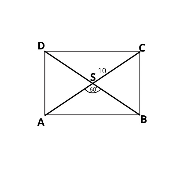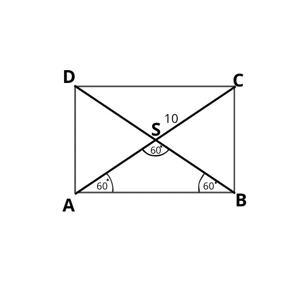 Wiemy, że w prostokącie przekątne przecinają się w połowie, a więc trójkąt ABS jest równoramienny: