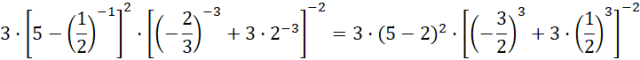 Oblicz podane wyrażenie pamiętając o kolejności wykonywania działań (potęgowanie wykonujemy przed mnożeniem) i zasadach działań na ułamkach. Przy ujemnych potęgach użyj wzoru: