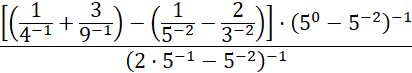 Oblicz podane wyrażenie pamiętając o kolejności wykonywania działań (potęgowanie wykonujemy przed mnożeniem) i zasadach działań na ułamkach. Przy ujemnych potęgach użyj wzoru: