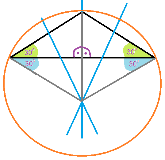 Wyznacz promień okręgu opisanego na trójkącie, jeśli jest równoramienny, wysokość na podstawę ma długość 1, a katy przy tej podstawie mają po 30°.