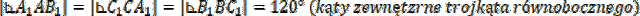 , bo to kąty zewnętrzne trójkąta równobocznego. Trójkąty