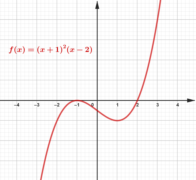 3. Prowadź funkcję tak, aby przecinała oś w miejscach, w których posiada ona pierwiastki, pamiętając, że gdy krotność pierwiastki jest nieparzysta, to przecinamy oś, a gdy jest parzysta – odbijamy wykres od osi.
