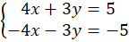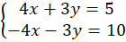 Zauważ, że jeżeli zapiszesz równanie, w którym współczynniki przy x i y mają przeciwne znaki niż w podanym równaniu, to dodając równania stronami, z lewej wyjdzie zero. Żeby układ nie miał rozwiązań, musi być sprzeczny, więc z prawej strony równania dopisz liczbę inną niż -5, aby prawa strona się nie wyzerowała:
