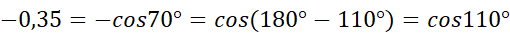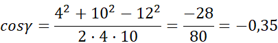 Twierdzenie cosinusów: w dowolnym trójkącie kwadrat długości jednego boku jest równy sumie kwadratów długości dwóch pozostałych boków, zmniejszonej o podwojony iloczyn długości tych boków i cosinusa kąta zawartego między nimi.