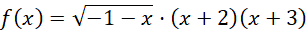 Aby otrzymać podaną dziedzinę musimy umieścić pod pierwiastkiem kwadratowym wyrażenie, które jest ujemne dla x większych od -1. Dodatkowo potrzebujemy zapisać iloczyn trzech wyrażeń, z których każde będzie zerowane przez jedną z podanych liczb.