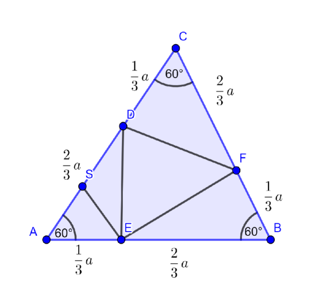 Wykaż, że jeżeli na bokach AB, BC i CA trójkąta równobocznego ABC zaznaczono odpowiednio punkty E, F, D tak, że