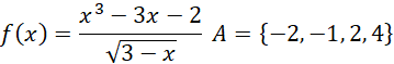 Dana jest funkcja f oraz zbiór A. Zbadaj, która z należących do niego liczb jest miejscem zerowym tej funkcji.