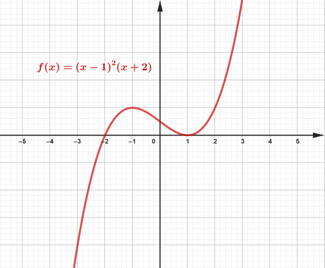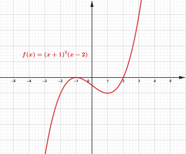 3. Prowadź funkcję tak, aby przecinała oś w miejscach, w których posiada ona pierwiastki, pamiętając, że gdy krotność pierwiastki jest nieparzysta, to przecinamy oś, a gdy jest parzysta – odbijamy wykres od osi.