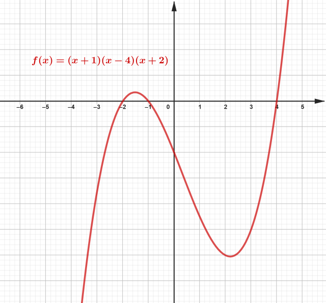 3. Prowadź funkcję tak, aby przecinała oś w miejscach, w których posiada ona pierwiastki, pamiętając, że gdy krotność pierwiastki jest nieparzysta, to przecinamy oś, a gdy jest parzysta – odbijamy wykres od osi.