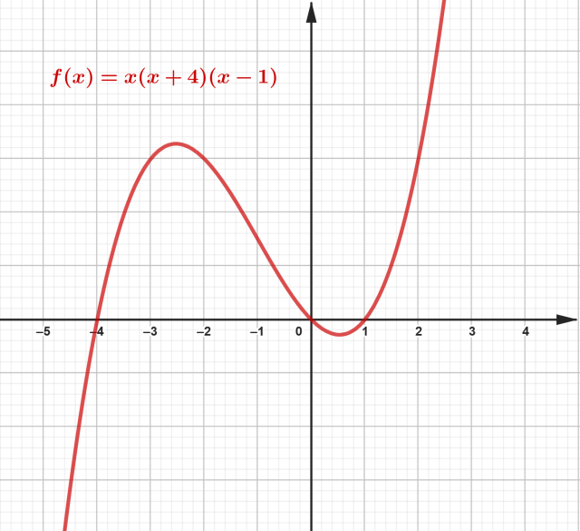 3. Prowadź funkcję tak, aby przecinała oś w miejscach, w których posiada ona pierwiastki, pamiętając, że gdy krotność pierwiastki jest nieparzysta, to przecinamy oś, a gdy jest parzysta – odbijamy wykres od osi.