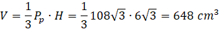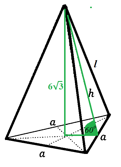 Masz wyznaczyć objętość i pole powierzchni bocznej ostrosłupa prawidłowego trójkątnego, w którym ściana boczna nachylona jest do podstawy pod kątem 60º, a jego wysokość ma 6√3 cm.