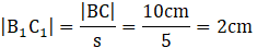 Boki trójkąta ABC mają długości |AB| = 8 cm, |BC| = 10 cm i |AC| = 12 cm. Trójkąt A₁B₁C₁ jest podobny do trójkąta ABC, a jego obwód wynosi 6 cm. Wyznacz długości boków trójkąta