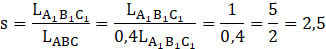 Trójkąt A₁B₁C₁ jest podobny do trójkąta ABC w skali s. Dodatkowo, obwód trójkąta ABC jest o 60% krótszy od obwodu trójkąta A₁B₁C₁. Wyznacz wartość skali tego trójkąta.