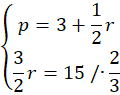 Zauważ, że p to suma połowy r i liczby 3: , więc zapisz układ równań: