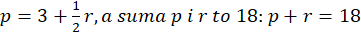 W tym zadaniu musisz zapisać informację, że liczba p jest o 3 większa od połowy liczby r, oraz że suma p i r wynosi 18, w postaci układu równań i musisz go rozwiązać.