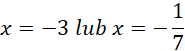 Liczba -3 nie spełnia naszego założenia, zatem rozwiązaniem podanego równania jest: