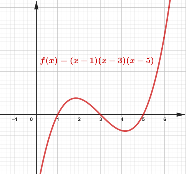 3. Prowadź funkcję tak, aby przecinała oś w miejscach, w których posiada ona pierwiastki, pamiętając, że gdy krotność pierwiastki jest nieparzysta, to przecinamy oś, a gdy jest parzysta – odbijamy wykres od osi.