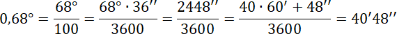 Miarę kąta wyrażoną w stopniach zapisz za pomocą minut i sekund.