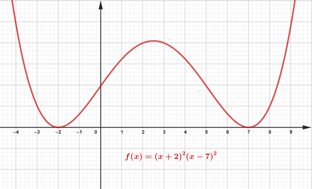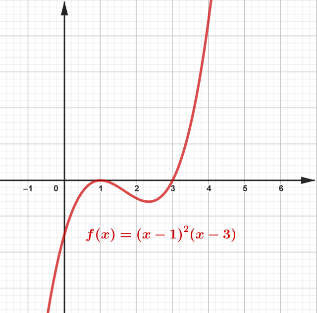 3. Prowadź funkcję tak, aby przecinała oś w miejscach, w których posiada ona pierwiastki, pamiętając, że gdy krotność pierwiastki jest nieparzysta, to przecinamy oś, a gdy jest parzysta – odbijamy wykres od osi.