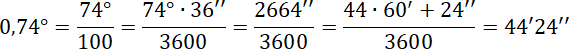 Miarę kąta wyrażoną w stopniach zapisz za pomocą minut i sekund.