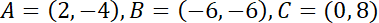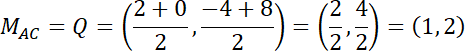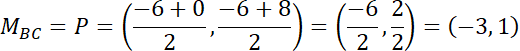 A. Korzystając ze wzoru oblicz środki boków trójkąta ABC: