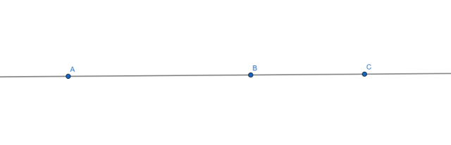 Z tego równania możesz zauważyć, że odcinek |AC| jest najdłuższy, a więc punkt C leży za punktem B.
