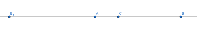 2.gdy punkt C leży przed A – wtedy nie może on leżeć dalej niż odległość do punktu B1, gdzie