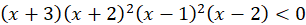 Zauważ, że skrajne liczby w przedziałach określają pierwiastki równania wielomianowego, a skoro przedziały są otwarte, to musisz zapisać nierówność mocną. Ponadto liczby -2 i 1 są „wyrwane” z przedziału (-3, 2), więc przy nieparzystej krotności pierwiastków x = -3 oraz x = 2, pierwiastki x = -2 i x = 1 muszą być parzystokrotne.