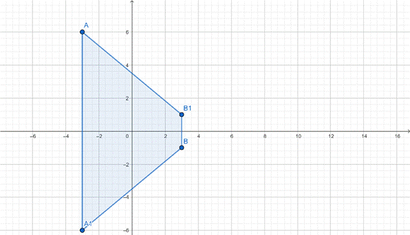 Symetria względem osi x sprawia, że zmienia się znak współrzędnej y, stąd: