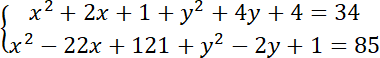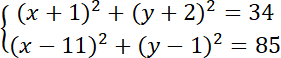 Znajdź punkty przecięcia się dwóch okręgów: