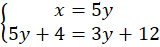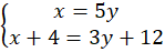 Przyjmij, że x to lata praktyki piekarza, zauważ, że x + 4 to lata praktyki piekarza za 4 lata. Przyjmij, że y to lata praktyki ucznia, czyli y + 4 to lata praktyki ucznia za 4 lata. Obecnie piekarz ma 5 razy więcej lat doświadczenia niż uczeń, więc zapisz równanie: