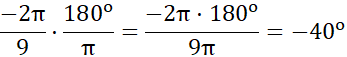 W celu zamiany radianów na stopnie należy pomnożyć daną liczbę przez