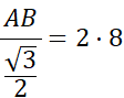 W trójkącie ABC kąty są odpowiednio równe α, β, 𝛾, a promień okręgu opisanego na tym trójkącie jest równy R. W tym zadaniu musisz obliczyć długość boku AB, jeśli α = 28°, B = 32° oraz R = 8 cm.