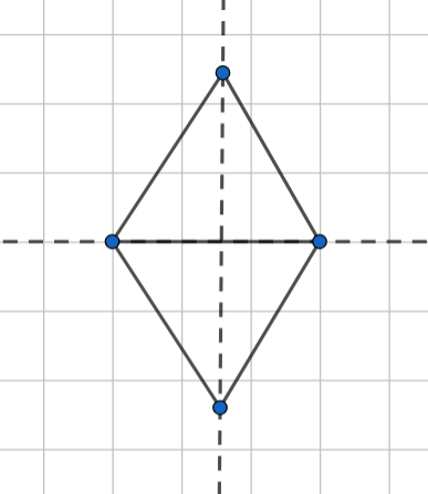 Wyznacz osie symetrii figury, która jest sumą dwóch trójkątów równobocznych o wspólnym boku.