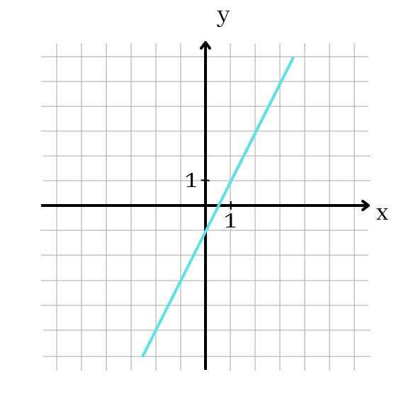 Oblicz kilka par liczb, które spełniają równanie (przykładowo: (1,1), (0,-1), (-1,-3)) i zaznacz je w układzie współrzędnych, a następnie połącz linią.