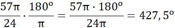 W celu zamiany radianów na stopnie należy pomnożyć daną liczbę przez