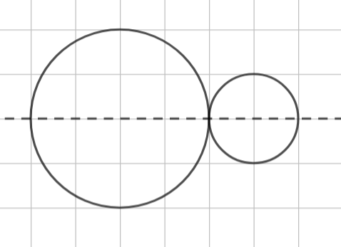 Wyznacz osie symetrii figury, która jest sumą dwóch okręgów o różnych promieniach, stycznych zewnętrznie.