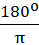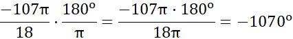W celu zamiany radianów na stopnie należy pomnożyć daną liczbę przez