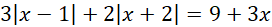 Na początku oblicz przedziały, w których wyrażenia wewnątrz wartości bezwzględnych są dodatnie i przedziały, w których są ujemne. Zauważ, że przedziały te dzielą zbiór liczb rzeczywistych na 3 części i dla każdej z nich osobno opuść wartości bezwzględne w odpowiedni sposób oraz oblicz rozwiązania tak powstałych równań. Sprawdź czy obliczone rozwiązania zawierają się w danej części zbioru liczb rzeczywistych i jeśli tak, to należą one do zbioru rozwiązań całego równania.