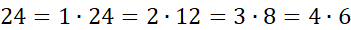 Wypiszmy dodatnie dzielniki liczby 24 w parach: