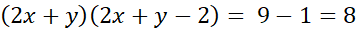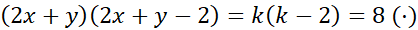 Szukane liczby x i y muszą być naturalne oraz dodatnie, więc również ich suma k jest naturalna i dodatnia. Iloczyn sumy k oraz sumy pomniejszonej o dwa k-2 wynosi 8, więc obie te liczby muszą być dzielnikami liczby 8.