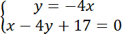 Stwórz układ równań oraz rozwiąż go, aby wyznaczyć punkt przecięcia się prostych:
