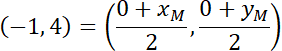 Znaleziony punkt jest środkiem odcinka łączącego punkty do siebie symetryczne, więc: