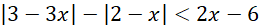 Na początku oblicz przedziały, w których wyrażenia wewnątrz wartości bezwzględnych są dodatnie i przedziały, w których są ujemne. Zauważ, że przedziały te dzielą zbiór liczb rzeczywistych na 3 części i dla każdej z nich osobno opuść wartości bezwzględne w odpowiedni sposób oraz oblicz rozwiązania tak powstałych nierówności. Sprawdź czy obliczone rozwiązania zawierają się w danej części zbioru liczb rzeczywistych i jeśli tak, to należą one do zbioru rozwiązań całej nierówności. Zauważ, że podana nierówność nie ma rozwiązań.