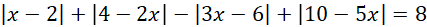 Na początku oblicz przedziały, w których wyrażenia wewnątrz wartości bezwzględnych są dodatnie i przedziały, w których są ujemne. Zauważ, że przedziały te dzielą zbiór liczb rzeczywistych na 3 części i dla każdej z nich osobno opuść wartości bezwzględne w odpowiedni sposób oraz oblicz rozwiązania tak powstałych równań. Sprawdź czy obliczone rozwiązania zawierają się w danej części zbioru liczb rzeczywistych i jeśli tak, to należą one do zbioru rozwiązań całego równania.