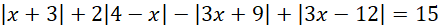 Na początku oblicz przedziały, w których wyrażenia wewnątrz wartości bezwzględnych są dodatnie i przedziały, w których są ujemne. Zauważ, że przedziały te dzielą zbiór liczb rzeczywistych na 4 części i dla każdej z nich osobno opuść wartości bezwzględne w odpowiedni sposób oraz oblicz rozwiązania tak powstałych równań. Sprawdź czy obliczone rozwiązania zawierają się w danej części zbioru liczb rzeczywistych i jeśli tak, to należą one do zbioru rozwiązań całego równania.