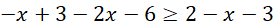 Na początku oblicz przedziały, w których wyrażenia wewnątrz wartości bezwzględnych są dodatnie i przedziały, w których są ujemne. Zauważ, że przedziały te dzielą zbiór liczb rzeczywistych na 3 części i dla każdej z nich osobno opuść wartości bezwzględne w odpowiedni sposób oraz oblicz rozwiązania tak powstałych nierówności. Sprawdź czy obliczone rozwiązania zawierają się w danej części zbioru liczb rzeczywistych i jeśli tak, to należą one do zbioru rozwiązań całej nierówności. Zauważ, że wszystkie rozpatrywane przedziały są jednocześnie rozwiązaniami, więc nierówność spełnia x jako dowolna liczba rzeczywista.