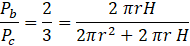 Masz wyznaczyć stosunek wysokości walca do promienia jego podstawy przy założeniu, że stosunek pola jego powierzchni bocznej do pola powierzchni całkowitej wynosi 2 : 3.