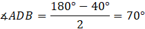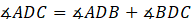 Kąt ADC to suma kątów ADB oraz BDC. Kąt BDC wyliczysz, uwzględniając, że suma kątów w trójkącie ma wartość 180