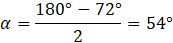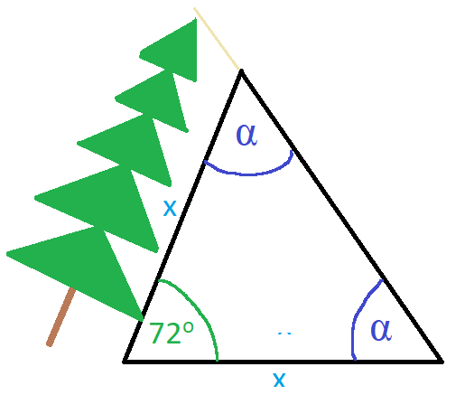 Oblicz, pod jakim kątem padają promienie słoneczne, jeśli sosna jest pochylona pod kątem 72° do poziomu, a jej długość jest równa długości jej cienia.